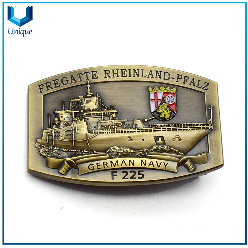 | Artículo | Personalice la fábrica de artesanías de metal de diseño, hebilla de metal de la Marina de Alemania en chapado de latón antiguo, hebilla de cinturón de policía militar 3D para honor regalos sovuenir |